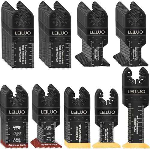 LEILUO 10 Pcs Titanium Multitool Accessories Kit for Wood Nails Drywall Cutting Universal Oscillating Saw Attachments with Storage Bag Compatible with DeWalt Dremel Makita and More