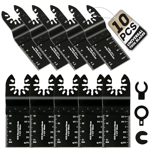10 Pcs Multi Tool Blades Oscillating Saw Blades Universal Oscillating Quick Release Saw Blades Compatible with Dewalt, Milwaukee, Makita, Ryobi, Rockwell, Bosch