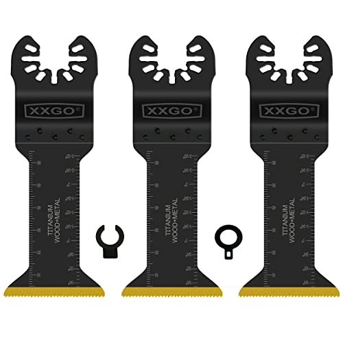 XXGO 3 Pcs Titanium Oscillating Multitool Saw Blades for Nails Metal Screws Wood Plastic Compatible with Bosch Chicago Dremel Genesis Harbor Freight Makita, Ridgid, Ryobi, Rockwell XG5203U