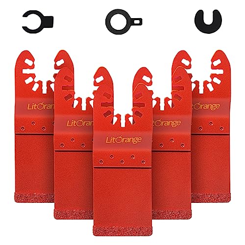 Litorange Carbide End Multi Tool Blades Oscillating Saw Blades Mortar Plaster Grout Remover Compatible with Dewalt Milwaukee Makita Bosch Dremel 5 Pack