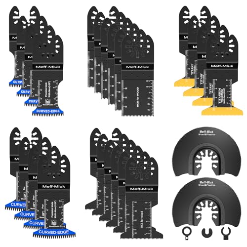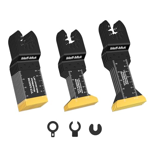 Meff-Mluk 26PCS Japanese Titanium Oscillating Saw Blades, Universal Titanium Multitool Blades for Wood Plastics Metal Cutting, Multi Tool Blade Kits Fit Milwaukee Ryobi Rockwell Makita Bosch and More