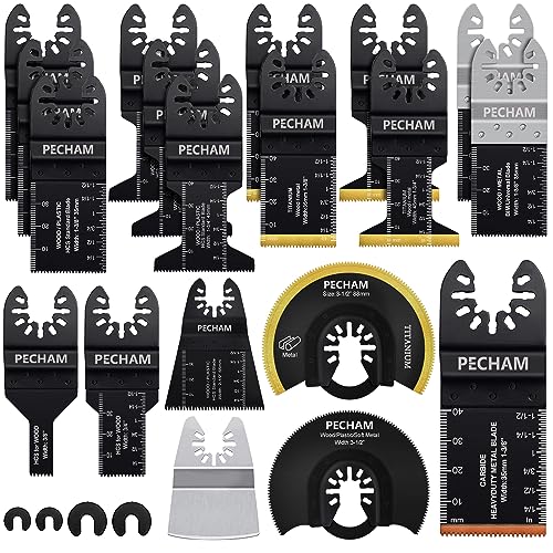 PECHAM 23PCS Titanium & Carbide Multitool Blades Oscillating Tool Saw Blades Heavy Duty for Hard Material, Metal/Steel Nails/Bolts/Screws Fit Most Oscillating Tools