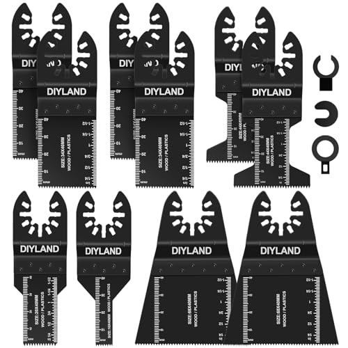 DIYLAND 13PCS Multi Tool Blade Set, Universal Oscillating Saw Blades, Oscillating Tool Accessories for Wood Plastics Cutting, Multitool Blades Compatible with Makita, Milwaukee, Dremel, Ryobi and More