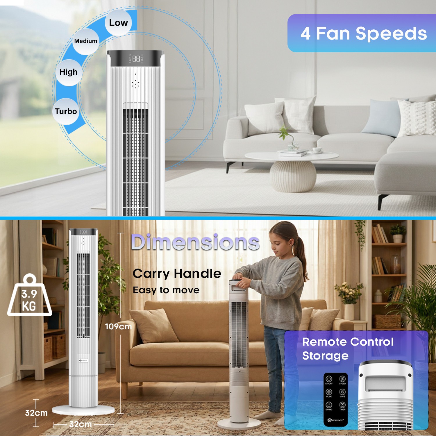 Tower Fan | 43 inch Oscillating Tower Fan | Remote | 4 Fan Speeds | PureMate