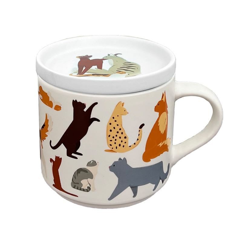 Porcelain Mug & Coaster Lid Set - Feline Fine Cats (New)