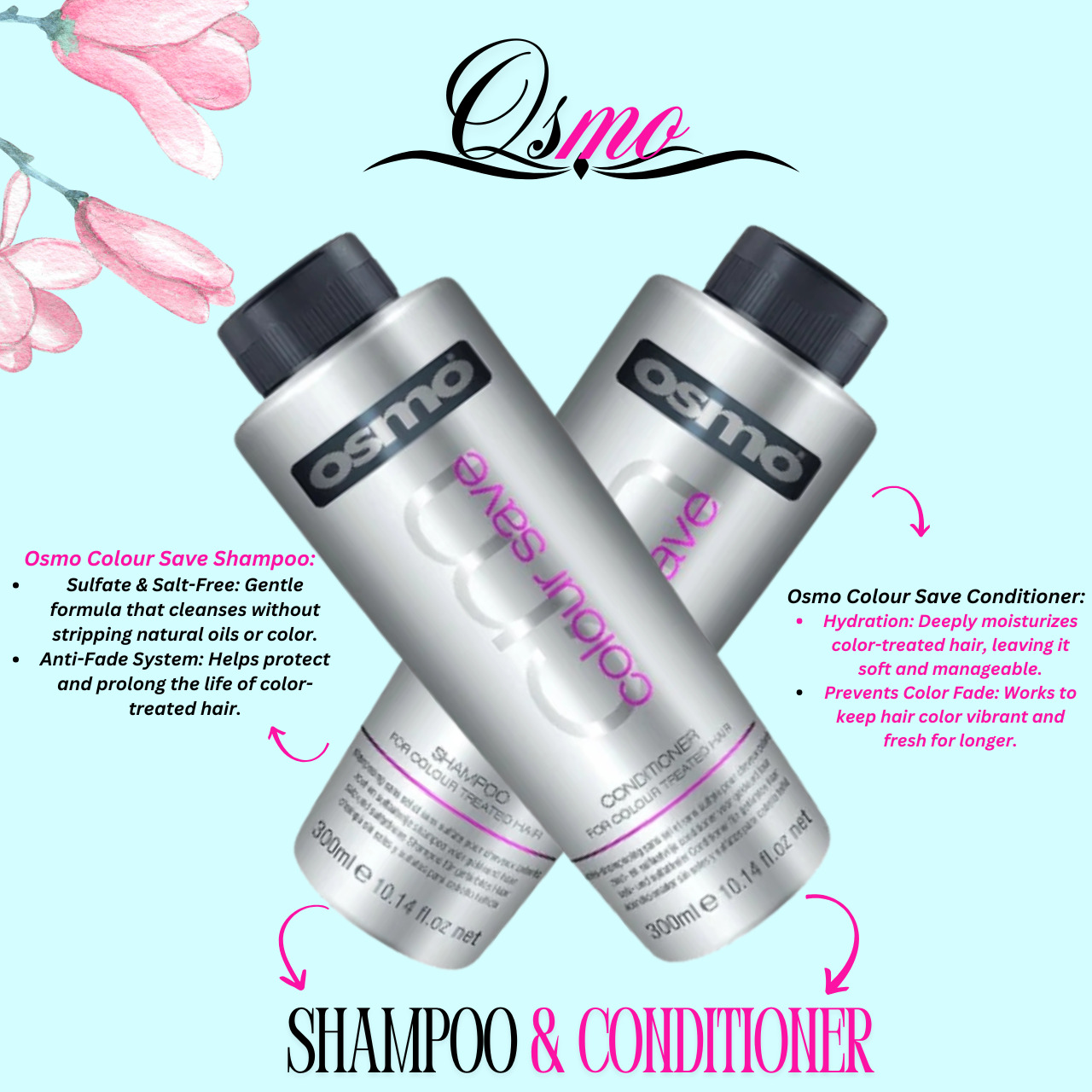 Osmo Colour Save Shampoo 300ml and Conditioner 300ml Duo Pack Free P&P
