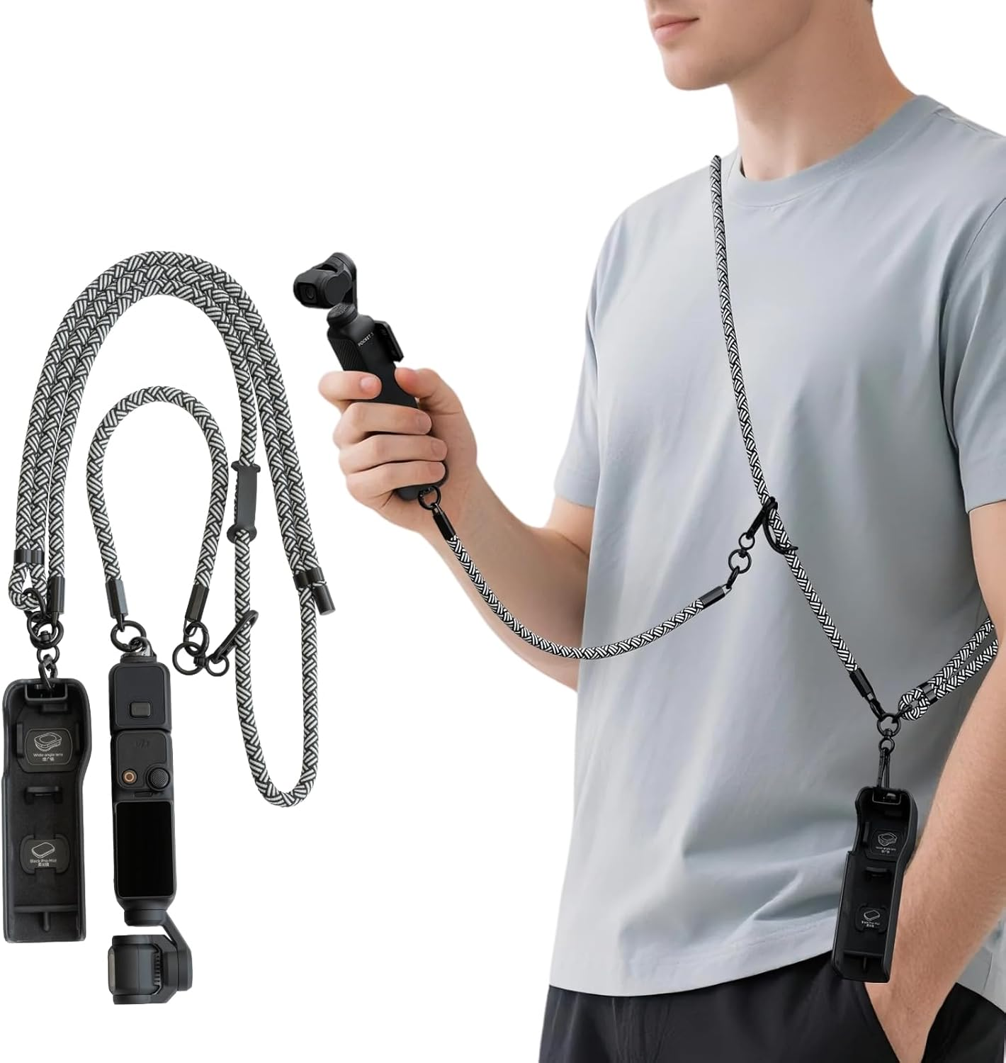 muuee Crossbody Neck Strap for DJI Osmo Pocket 3, 2 in 1 DJI Lanyard Adjustable Crossbody and Wrist Strap, Fit for Insta360 X5/X4, GoPro Hero, Selfie Stick and Camera Acessories