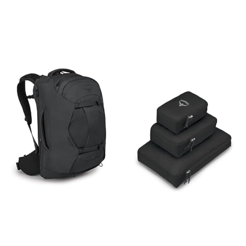 Osprey Farpoint 40 Men's Travel Backpack Tunnel Vision Grey O/S & Packing Cube Set Unisex Accessories - Travel Black O/S