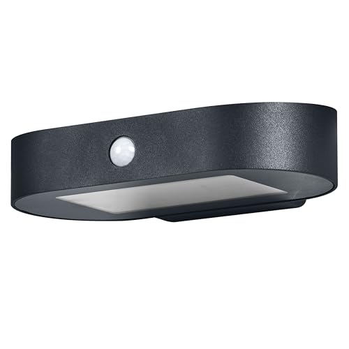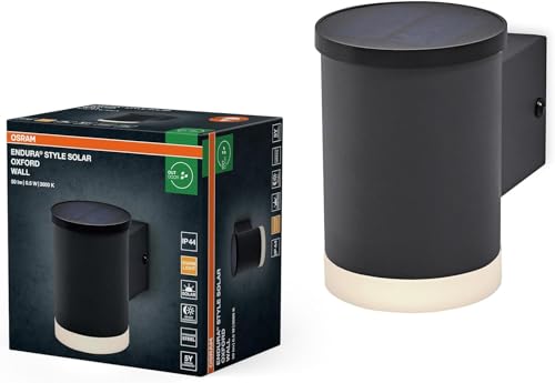 OSRAM Endura Style Oval Solar wall Light, Warm White Light (3000K), Integrated Sensor, usable Without Power, Long Battery Life: 30 Times 60 Seconds in PIR Mode, IP44 Protection, Black
