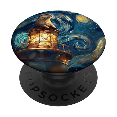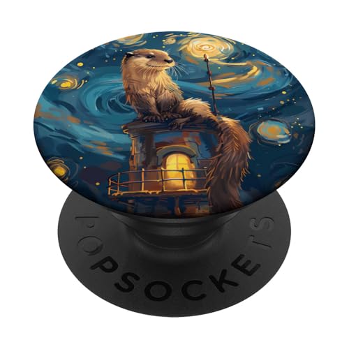 Starry-Night Otter Lighthouse Art PopSockets Adhesive PopGrip
