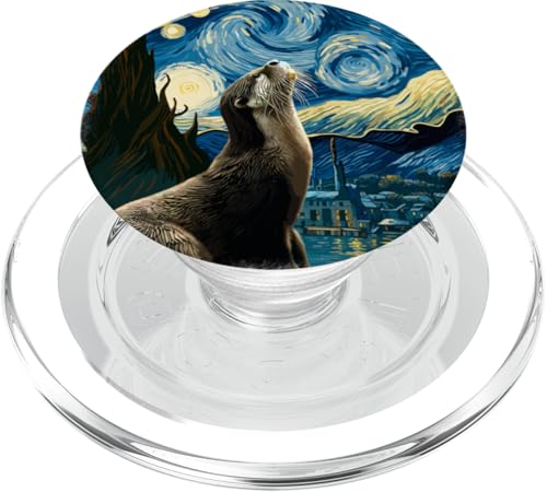 Starry Night Art Van Gogh Animal Surreal Parody Artsy Otter PopSockets PopGrip for MagSafe