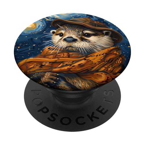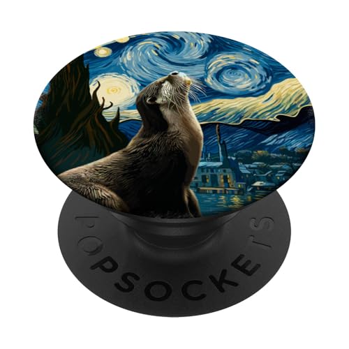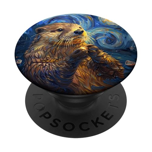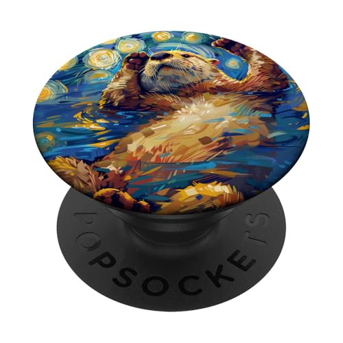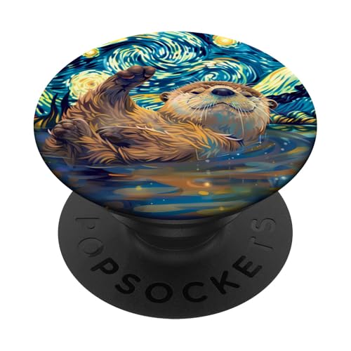 Starry Night Art Van Gogh Animal Surreal Parody Artsy Otter PopSockets Adhesive PopGrip