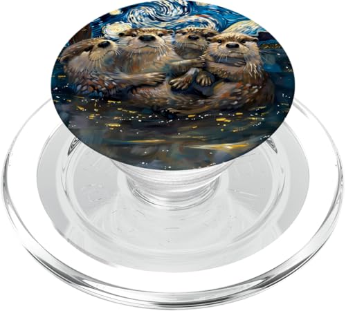 Starry Night Art Van Gogh Animal Surreal Parody Artsy Otter PopSockets PopWallet for MagSafe