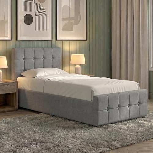 Aspire Beds Upholstered Storage Ottoman Bed Frames With End or Side Opening Ottoman Lift, End Opening, Grey Linen, 4ft Small Double 120 x 190