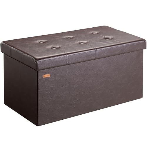 BRIAN & DANY Folding Ottoman Bench Storage Box with Lid, Large Storage Seat Faux Leather Footstool Toy Storage Box, Brown, 80 x 40 x 40 cm