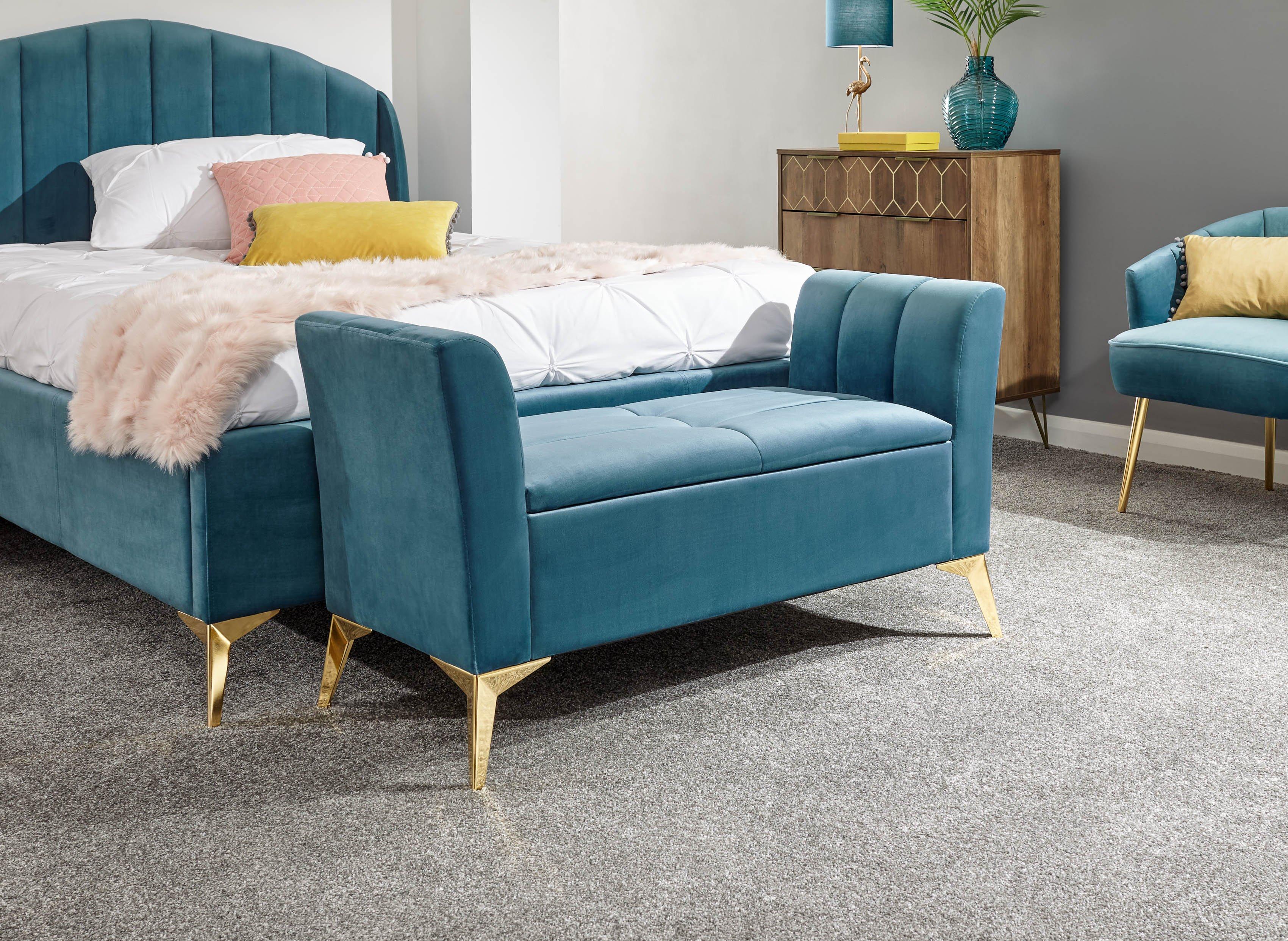 LPD Lola Velvet Storage Ottoman Bench - Grey Mustard Pink Teal (Mustard)