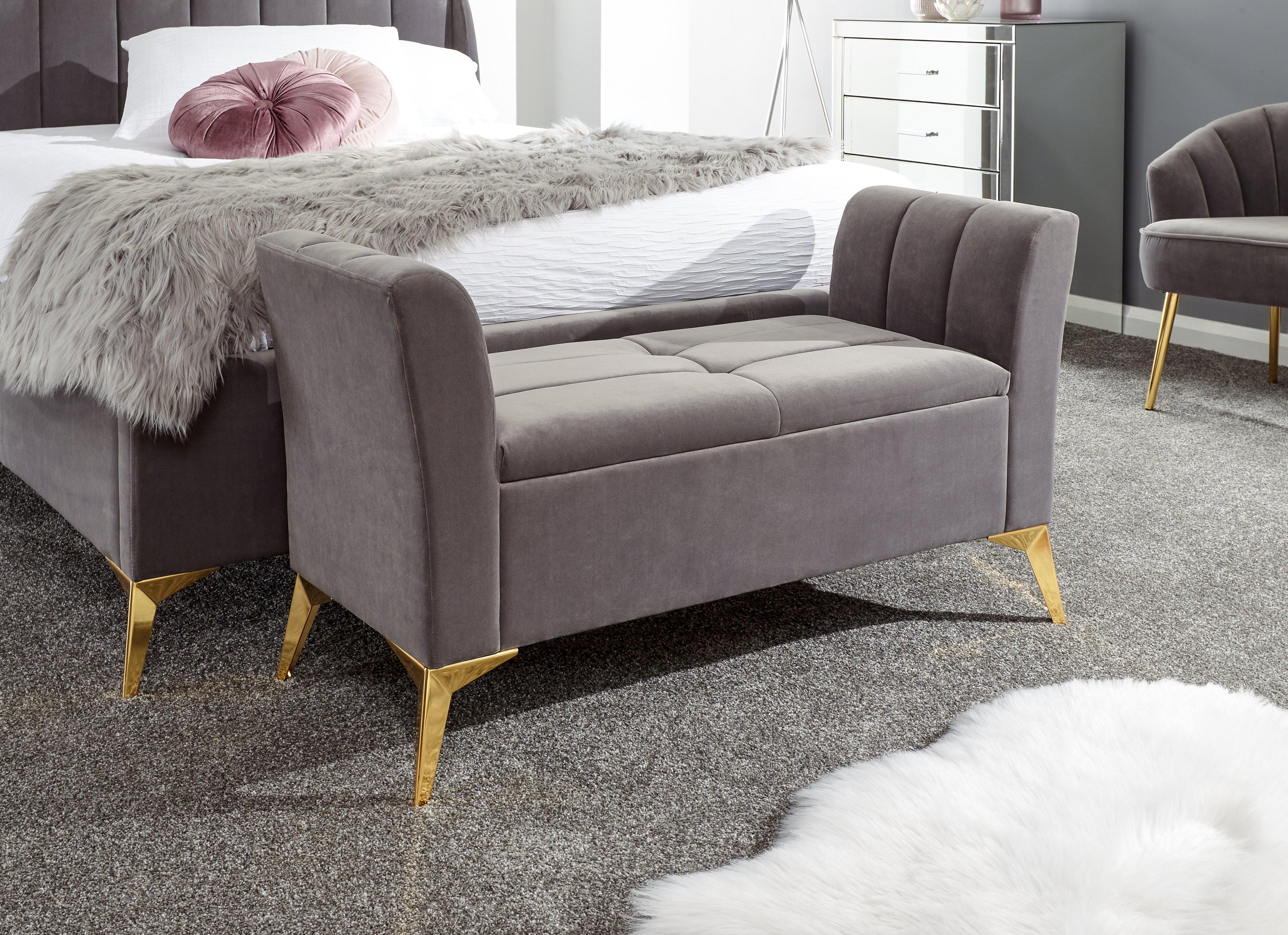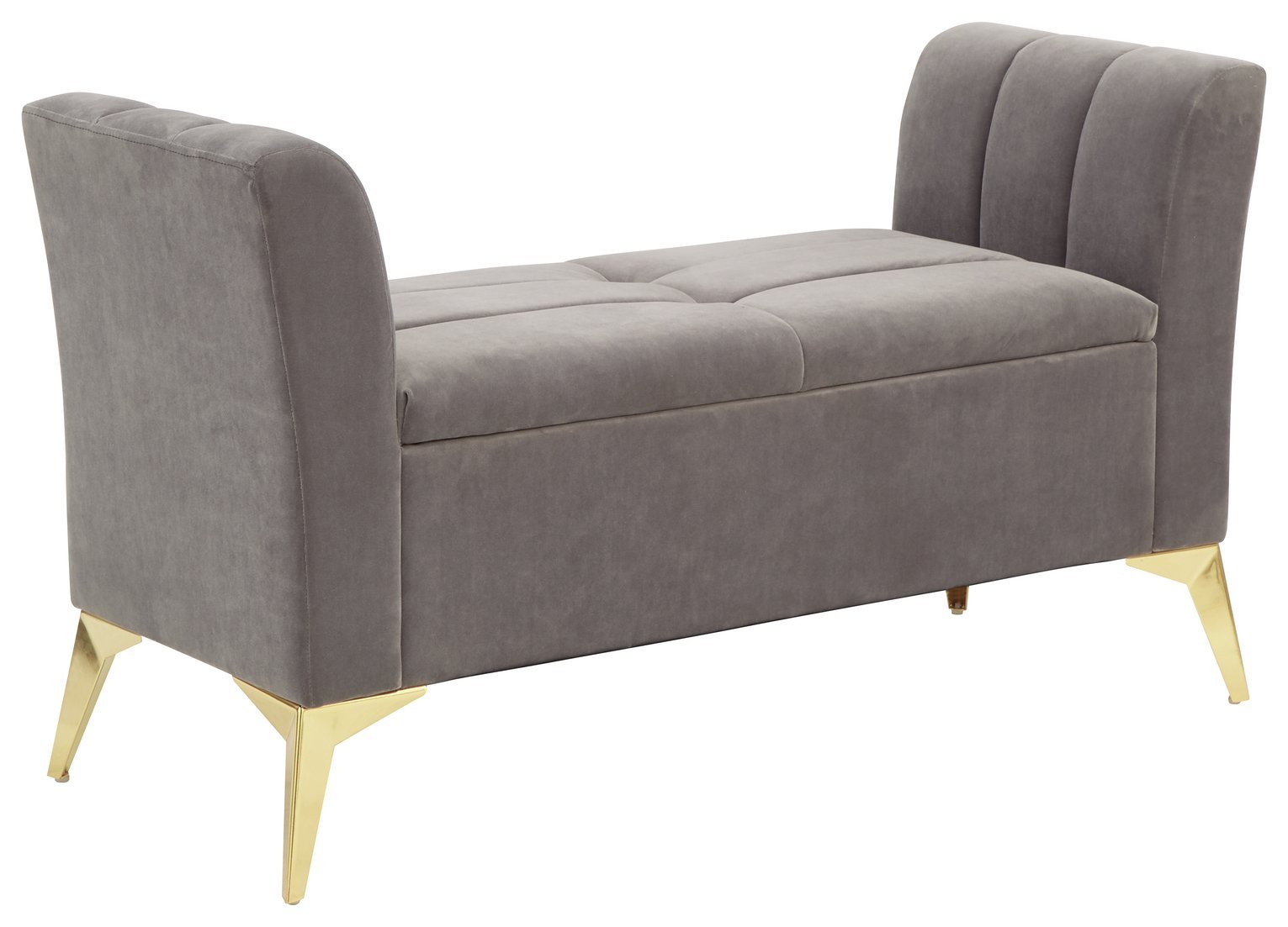 Grey Velvet Ottoman Storage Bench With Brass Style Legs