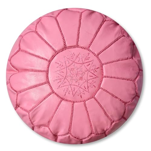Poufs&Pillows Premium Leather Pouffe - Handmade - Delivered stuffed - Ottoman, footstool, floor cushion (Pink)