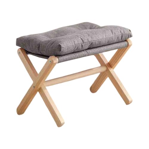 Panana 2 Seater Sofas with Footstool Ottoman in Gray Linen Fabric, CUhsion Back with Solid Wood Legs