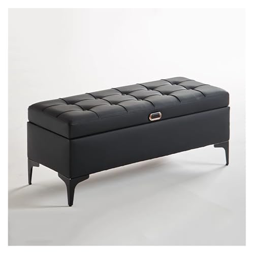 WIGSELBL Faux Leather Storage Ottoman Coffee Table Footrest Stool with Storage Bench for Living Room,Upholstered Ottoman with Storage End of Bed Bench(Nero,100CM)