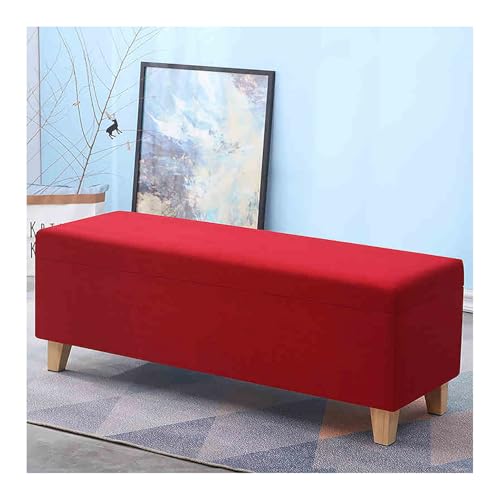 Ottoman With Storage, End Of Bed Storage Bench, Fabric Shoe Changing Stool, Rectangle Storage Chest With Upholstered Seating, For Entryway, Living Room, Bedroom(Red,90x40x40cm)
