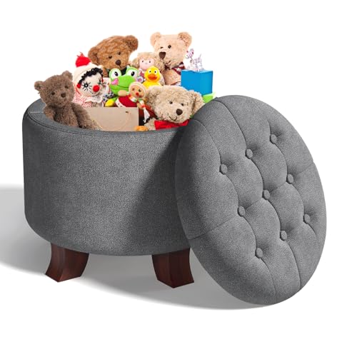 BRIGHTORIA 20" Round Ottoman with Storage Bed, Foot Benches Rectangular Linen Pouffe for Living Room, Bedside and Footstool, Small Bean Bag with 130L Capacity