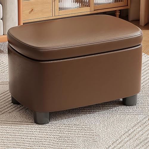 Ottoman With Storage, End Of Bed Storage Bench, Small Foot Stool With Hidden Compartment, Upholstered Storage Pouf, Vanity Stool, For Bedroom Living Room Entryway(Brown)