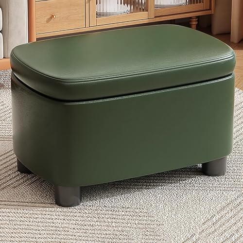 GHFXSCV Modern Green Faux Leather Storage Bench with Footrest for Bedroom Rectangular Ottoman with Under-Bed Storage for Stylish Home Decor