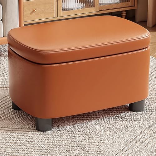 WIGSELBL Faux Leather Storage Ottoman Coffee Table Footrest Stool with Storage Bench for Living Room,Upholstered Ottoman with Storage End of Bed Bench(Orange,60cm)