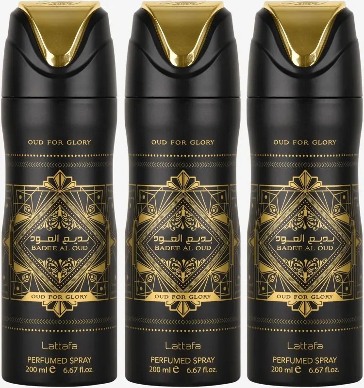 Badee Al Oud (Oud for Glory) DEO Spray 200ml by Lattafa - Pack of 3