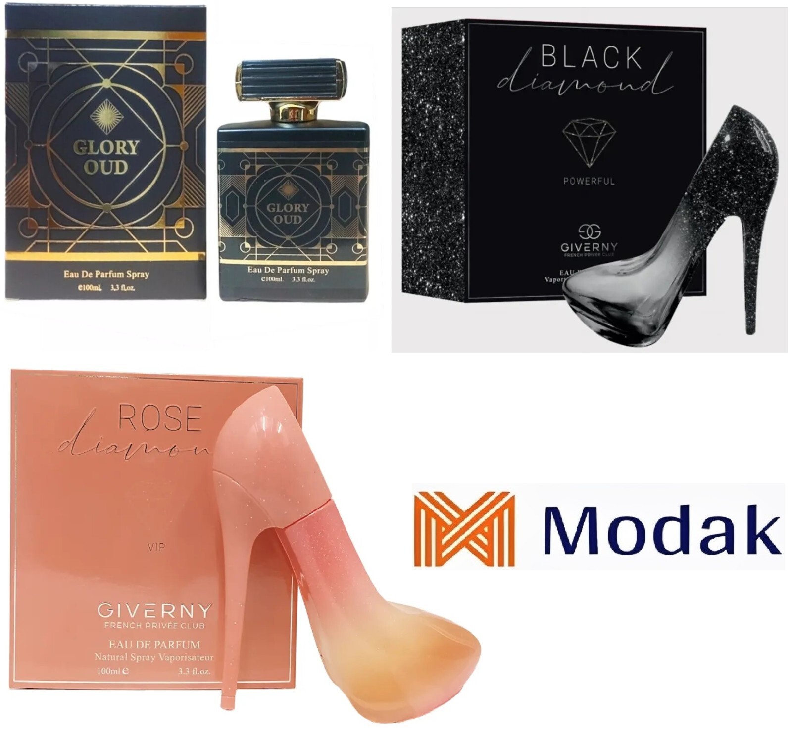 Modak 3 Pack women Perfume Glory OUD, Rose Diamond, Black Diamond EDP 100ml
