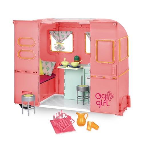 Our Generation – 18-Inch Doll Accessories – Camping Trailer – Kitchen & Cooking Accessories – Pretend Play 3+ Years– R.V. Seeing You Camper (Pink)