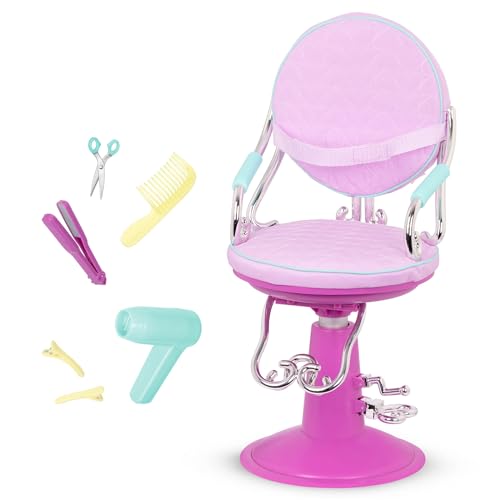 Our Generation – Adjustable Salon Chair Playset – Hair Dryer & Styling Tools – 18-inch Doll Accessories – Pretend Play – Toys for Kids Ages 3 & Up – Sitting Pretty Salon Chair