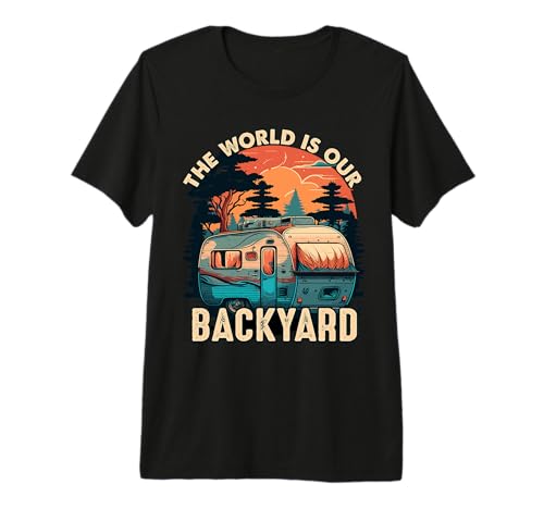 Camping Trailer The World is Our Backyard Camper Love Travel Premium T-Shirt
