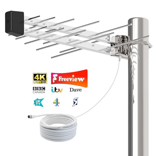 Outdoor TV Aerial Long Range – Digital HDTV Antenna for 4K/1080P Freeview Channels, Strong VHF/UHF Reception, Weatherproof Loft & Outdoor TV Aerial with 10m Coaxial Cable (Mounting Pole Not Included)
