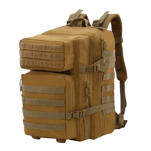 BWBIKE 40L Military Tactical Backpacks Outdoor Hiking Backpack Waterproof Camo Daypack Durable Molle Army 3 Days Assault Pack Roomy Trekking Rucksack, Khaki