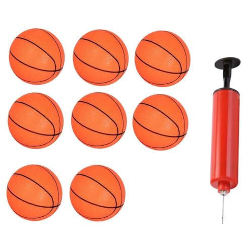 Hohopeti Mini Inflatable 4-inch Orange Basketball Set, 8pcs Bouncy Sports Balls with Red Pump, Indoor and Outdoor Basketballs for ’s Play and Exercise