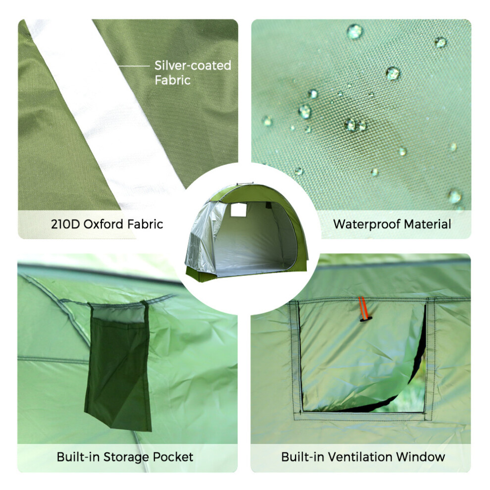 Portable Outdoor Bike Storage Tent, Green, 256 x 222 x 182 cm, Waterproof, Windproof, Flame Retardant, for Camping, Backyard, Multiple Bikes