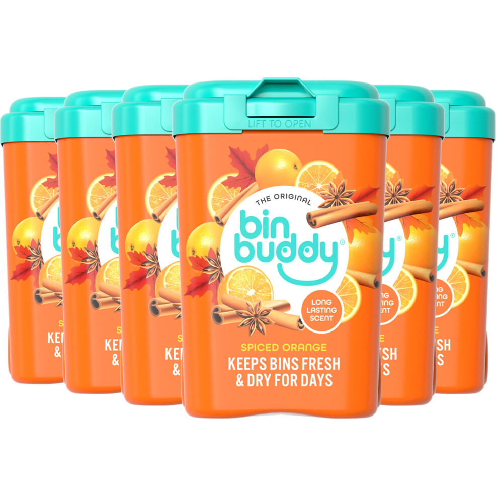 Bin Buddy Spiced Orange, 450g, Pack of 6, Bin Freshener Deodoriser Powder, Leaves Your Bin Smelling Great, Suitable for Indoor and Outdoor Bins