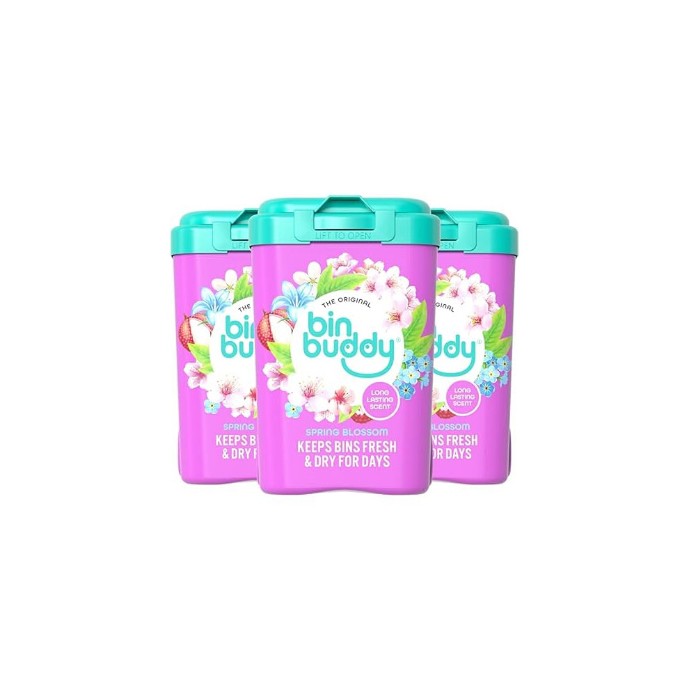 Bin Buddy Fresh Spring Blossom 450g x 3, Bin Freshener Deodoriser Powder, Leaves Your Bin Smelling Great, Suitable for Indoor and Outdoor Bins, Pack