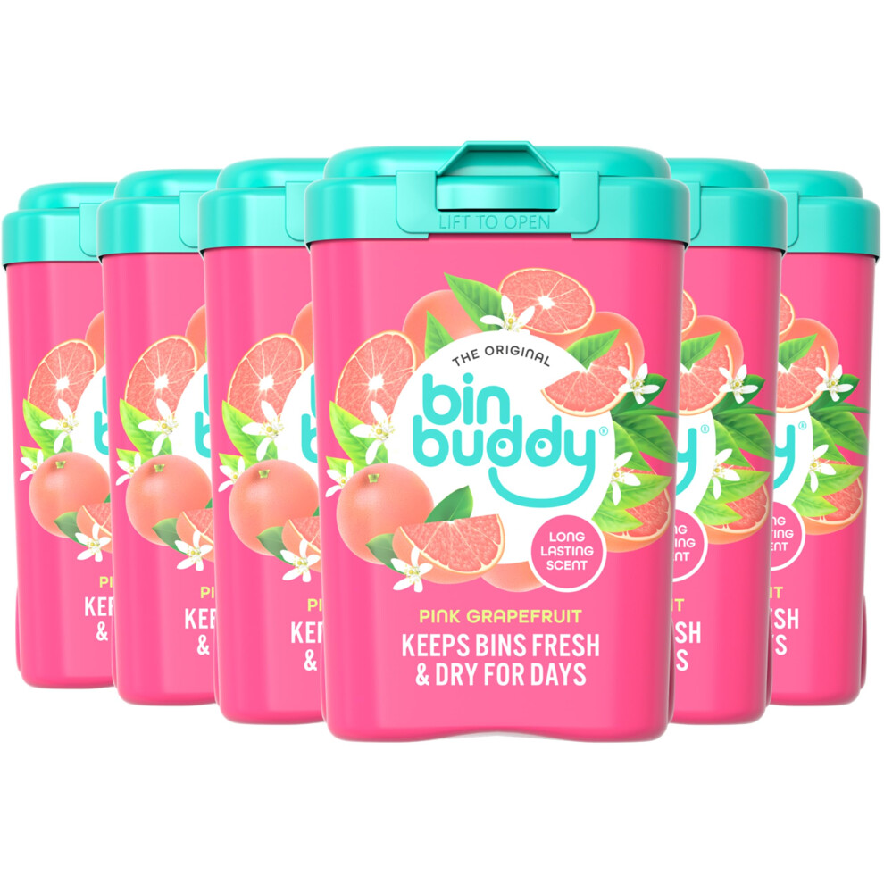 Bin Buddy Pink Grapefruit, 450g, Pack of 6, Bin Freshener Deodoriser Powder, Leaves Your Bin Smelling Great, Suitable for Indoor and Outdoor Bins
