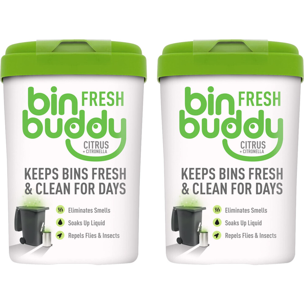 Bin Buddy Fresh Citrus, 450g, Bin Freshener Deodoriser Powder, Leaves Your Bin Smelling Great, Suitable for Indoor and Outdoor Bins (Pack of 2)