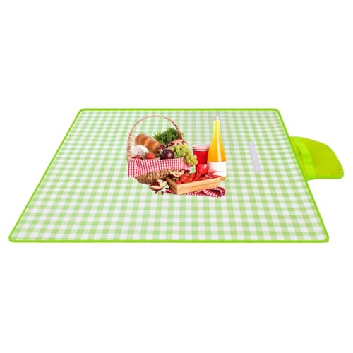 Outdoor Picnic Blanket, Waterproof Damp Proof Thickened Nonwoven Foldable Portable Gingham Picnic Mat for Beach Camping (200 200cm