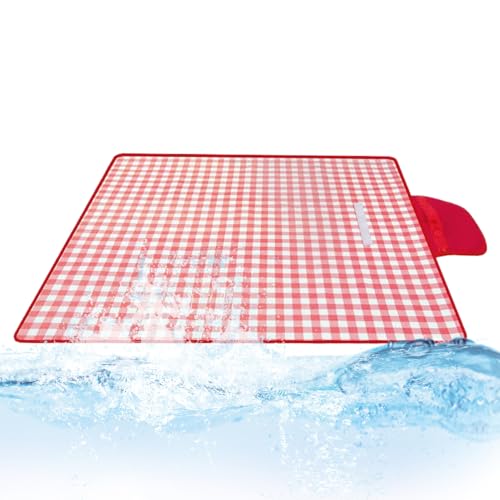 Adore Home 150x200cm Extra Large Outdoor Picnic Blanket with Waterproof Reverse and Soft Fleece Top, Red Check