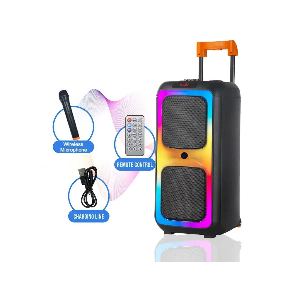 6000W Double 8-Inch High-Quality Outdoor Portable Bluetooth Speakers with Wireless Mic & Pull Rod