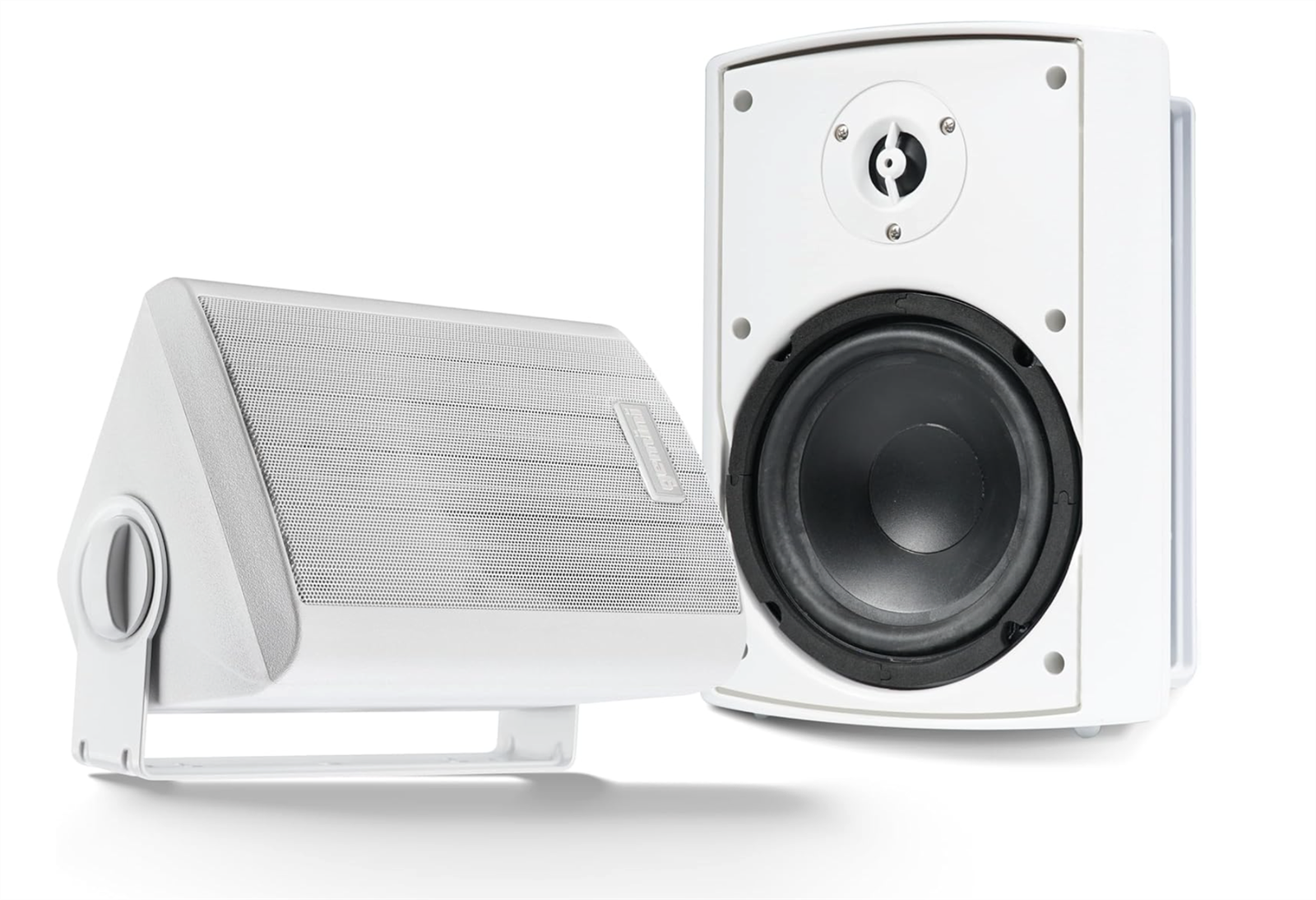 Gemini Sound GHSI-W650BT 6.5" Outdoor Bluetooth Speakers – Wired Powered IP44 Waterproof Wall Mount Pair for Patios, Rust-Proof Aluminum Grills, Expandable to 16 Speakers, Immersive Sound (White)