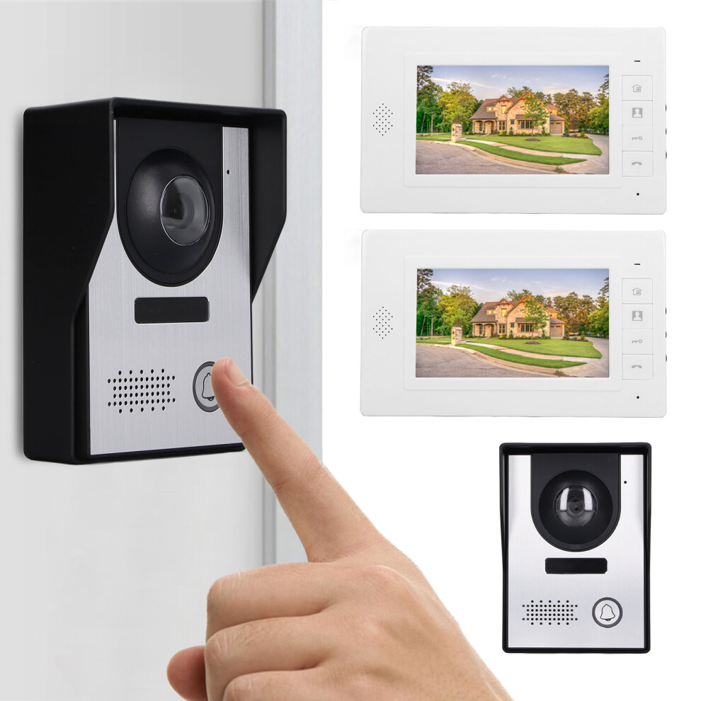Video Doorbell 2 Pcs 7in TFT Screen Hands Free Call Monitor Night Vision Outdoor Camera Video Intercom System