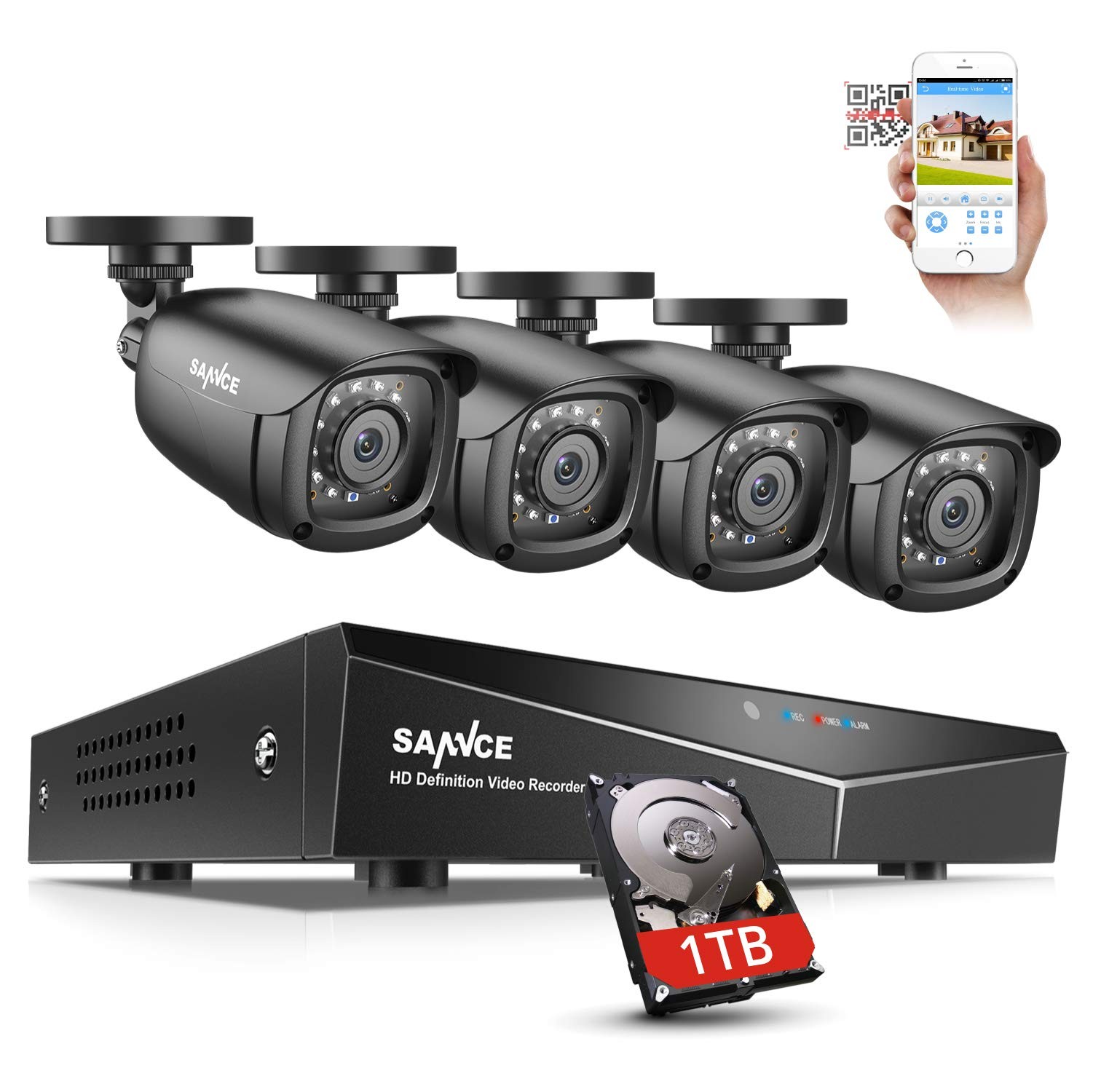 SANNCE 8 Channel 1080P Outdoor CCTV Camera System, 4pcs 1080P Weatherproof Home Security Camera, Motion Detection, Email &APP Alert, P2P, Live Viewing Kits 1TB Hard Drive (4*Cameras+DVR+1TB HDD)