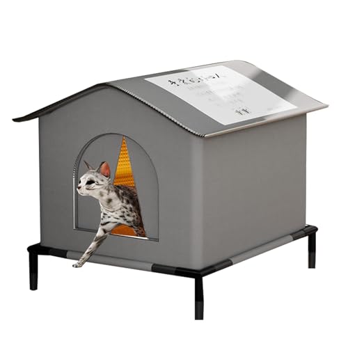 BESTXH Outdoor Heated Cat House in Winter, Extremely Insulated and Weatherproof, Elevated Feral Cat Shelter with Waterproof Eaves and Escape Door, for Outside Stray Cat,Grey,S