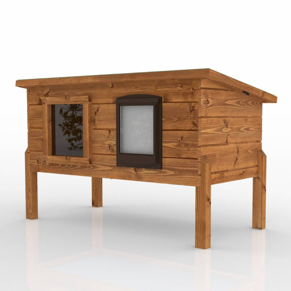 The Hutch Company Microchip Self Heating Cat Kennel with One-Way Privacy Window | Cosy Outdoor Cat House